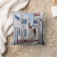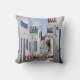 16 x 16 inch gooien kussens met een afbeelding van een schilderij van een waterverf van een ongekende steenweg op het eiland Mykonos, een Grieks eiland, een deel van de Cycladen, tussen Tinos, Syros, Paros en Naxos. Blauw terug.