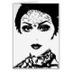 Dit zwarte en witte afbeelding van een dame met één blauw oog is nogal fascinerend. Het afbeelding heeft een Gotisch gevoel met haar Gothic make-up en wat je uit haar prachtig ontworpen top kunt maken. Deze kaart zou perfect zijn voor een aantal gelegenheden van een eenvoudige dankjewel tot een gelukkige verjaardag. De binnenkant is leeg gelaten, maar je kunt het aanpassen om een getypte boodschap aan het toe te voegen alvorens opdracht te geven.