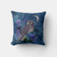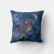 Mystic Paarse Uil en Moon op Grijs Blauw Kussen