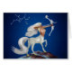 Het vrouw Sagittarius - enthousiast en onrustig om op zoek te gaan naar nieuwe horizonten. Haar pijlen vertegenwoordigen ambities, dromen en hoop die in de lucht worden geschoten naar een mystiek doel.