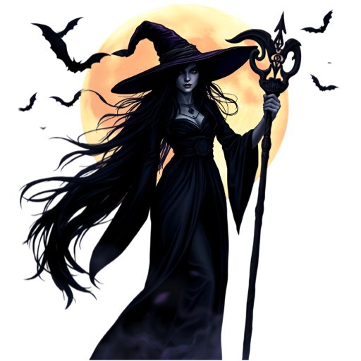Omarm de betoverende kracht van de nacht met dit prachtige ontwerp met een mystieke heks die hoog staat onder een gloeiende volle maan.