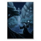 coole en leuke geschenken, kunstvoorwerpen en prints met een spiritueel opwindende fantasie of new age schilderij van een mysterieus ritueel uitgevoerd door een mysterieuze vrouw of een lichtwerker die een baan van zuiver wit licht vasthoudt aan een blauw gekleurd verlicht meer, met bossen, bergen, watervallen en tempels op de achtergrond. uitsluitend door frank glerum art