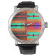 Het naadloze Abstracte Patroon is een digitaal patroon van de radiogolven van het multi-kleurenrechthoek digitaal ontwerp, dat in turquoise, bruin, rood, paars cirkel met horizontale en verticale lijnen en vierkanten wordt gedaan. Het is alsof je visueel luistert door design de geluiden van de stammen van oud.