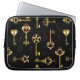 Naadloos patroon van antieke, gouden en silhouet sleutels op een zwarte achtergrond.