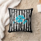 Naadloze abstracte blauwe bloemen wit zwart kussen