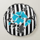 Naadloze abstracte blauwe bloemen wit zwart rond kussen