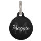 Houd uw huisdier veilig en verlies nooit meer met dit huisdier kenmerkt de gepersonaliseerde naam van de huisdier in de witte stijl van de manuscriptdoopvont en monogram in grijze serif doopvontstijl als achtergrond, op zwarte achtergrond, met de code van de het contactinformatie QR van de eigenaar op de rug van het label. Ideaal voor honden, katten en geliefde huisdieren.