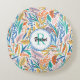 Kleurrijk botanisch patroon met dubbele ingelijste naam en initiaal versieren dit ronde kussen. Perfect voor achterkant van bureaustoel, meditatie, verpleegkussen. Wijzig de naam en het initiaal, zodat het van u is, met behulp van de Sjabloon die u hebt gekregen. Afmetingen zijn 16" diameter wanneer vlak en 14" gevuld. 100% geborsteld polyester is kreukvrij. Wasbaar in de machine, in staat om kleur te behouden en krimpweerstand te bieden. Gemaakt in de VS. Zie "Over dit product" aan de zijkant voor meer informatie.