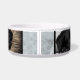 Moderne abstracte grijze achtergrond met de naam van de hond in zwart script en 2 foto's. Deze hondenkom wordt geleverd met de naam van een hond in zwart script en 2 foto's - personaliseer de kom met de naam van je hond en plaats twee van je foto's in de sjabloon.