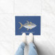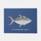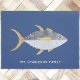 Vun tonijn met een luike glimlach op een blauwe achtergrond van de zeemacht. Originele kunst van Nic Squirrell. Verander de familienaam of de tekst om te personaliseren.