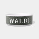 Naam van het huisdier en groene bladeren op verloo voerbakje