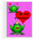 Liefde en hoppie voor mijn prinses. Mooie, grappige en romantische groene cartoon kikkers, roze / paarse kaart met felle liefdeswensen en hoop voor je prinses op de Valentijnsdag of op een dag van het jaar. U kunt de achtergrondkleur van deze kaart veranderen als u wilt (aanpassen-uitgeven-achtergrond).