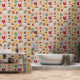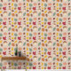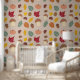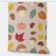 Behang met een herfstpatroon inclusief esdoorn, beuk, eik en hazelblad, paddenstoel, eikel, pompoen, kastanjes en walnoten in herfstkleuren. Een gezellig ontwerp dat doet denken aan natuur en bos voor uw keukeninrichting.
