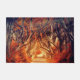 Een prachtige herfst illustratie van de paarse bomen die over een gouden, zonverlichte baan in een bos/bos huilen. Ideaal voor herfst, herfst. In kleuren van oranje, geel, goud en bruin.