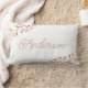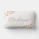 Op maat ontworpen werpkussen met een delicaat herfstgebladerte met een gepersonaliseerde familienaam.