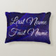 Create a humorous gift for yourself or for a friend with this name change parody geometric accent pillow. This product features front side, first and last name text customization. On the back side of the pillow, switch the first letters of your front and last names to create an interesting new name that you can show off to friends. Have fun and enjoy this unique creation which features a geometric blue space donuts. Complete the set with the in series design throw and round pillows.