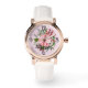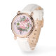 Name, Pink Poinsettia Bouquet White Leather Womans Horloge