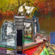 Een kunstontwerp van een smalle schoorsteen en een oude decoratieve lamp.Kanaalboten, in het Verenigd Koninkrijk bekend als narrowboten, werden oorspronkelijk gebruikt om goederen door het land te vervoeren. Ze worden nu voornamelijk gebruikt voor vrijetijdsbesteding en trekken mensen uit de hele wereld aan om van ons platteland te genieten. Deze boten zien er erg uit met hun bruine huiden, traditioneel blauw, rood of groen. De design van de bloemen en de kasteel zijn ook de traditionele boten.