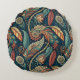 Dit semi-abstracte etnische patroonkussen heeft wervelingen van veren, bloemen en paisley-achtige vormen in stoffig blauwgroen, terra cotta, roest, diepblauw groen en crème. Deze stijl print zou passen in een verscheidenheid van decor kleuren en stijlen, met een patroon met gedurfde wervelingen in gedempte tinten. Het ontwerp is aan beide zijden van dit ronde kussen hetzelfde en het is verkrijgbaar in meerdere stoffen.