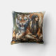Een Indiaanse vrouw zit kalm naast een majestueuze tijger in de buurt van een riviertje, omringd door natuur, en belichaamt een diepe connectie met dieren in het wild.
