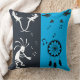 Omkeerbare Abstracte Grot Petroglyphs regenboog Kokopelli en woestijn en droomvanger in zwart-wit met blauwgroen en staalblauw op de voorkant en kleuren die u kunt veranderen en aanpassen aan uw kamerdecorsmaak voor beide zijden. Kokopelli is een vruchtbaarheidsgodheid, een bult-fluitspeler. Indiaanse culturen. Toegeschreven aan oude buitenaardse wezens of stammenkunst en geïnspireerd door grot- en rotstekeningen. Pas uw zuidwestelijke stijl aan Kokopelli oude kussenslopen kleuren, afbeeldingen en stijlen. Geweldig cadeau-idee voor degenen die nadenken over de oude geschiedenis van de planeet.
