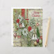 The design is built on a stunning collage of rich reds and varied greens, combining patchwork squares on the left with vintage sheet music on the right. The center features an abundant arrangement of red and creamy white poinsettias, snow-dusted foliage, and delicate white swirls.