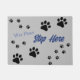 De welkome hondenliefhebbers met dit formaat dat pootdrukken en tekst bevat kunt u personaliseren, de getoonde Stap van de Pauten van de Wet van het gezegde hier. Een zachte, neutrale grijze achtergrond met blauwe tekst gaat goed met vele verschillende stijlen van het hondenliefhebber, of verander de kleuren om uw huis aan te passen.