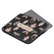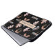 Deze laptophoes is voorzien van afbeeldingen bijen, vlinders, libellen, bladeren, eikels en dennenappels. De afbeeldingen zijn in metaalkoper, en grijs op een zwarte achtergrond.