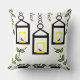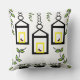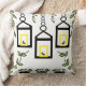 Groene Planten Vogels Natuur PatroonSierkussen. Groene planten in huis, decoratieve lantaarns, kleurrijke vogels botanisch natuur patroon.