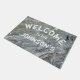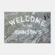 Voeg je familienaam toe aan deze stijlvolle deur. Oorspronkelijke foto van natuurlijke rivierrotskliffen. in grijs, is deze mat volledig aanpasbaar! Verander de plaatsing, de kleur, of de doopvont door zich uit te geven!