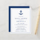 Nautical budget bridal doucht uitnodigingen met een eenvoudig en modern ontwerp met een blauw marinesanker samen met uw gebeurtenisdetails binnen een grens, over een witte achtergrond. Een elegant ontwerp dat perfect is voor een zomerfeest aan de kust op het strand. Deze goedkope bruiddoucheuitnodigingen worden op papier gedrukt voor een budgetvriendelijke optie.