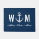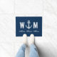 Nautical anchor monogram letter navy blue door mat
