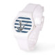 Nautical Anchor on Dark Midnight Blue Stripes Horloge