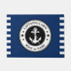 Aangepaste Captain's Cabin en Bootnaam met Anker, Touw en Sterren Gepersonaliseerde Navy Blue, Zwart-wit Deurmat.