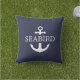 Witte Nautische anker met aangepaste bootnaam op een vaste blauw marineachtergrond. Moderne ankerfunctie logo in combinatie met klassieke Serif Font Boat Name sjabloon. Kies uw favoriete achtergrondkleur en creëer uw eigen elegante maritieme omgeving buiten het zitgebied. Dit kussen is ook een geweldig cadeauidee voor haar en hem, boaters en zeelieden. Patio heeft decoratieve ideeën gemaakt van oceaanliefde. #ybeedesign #ybeesea #nauticalankerkussens #ankerpilsautical #boatpillows © Design y.BEE ZEE
