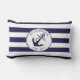 Nautische marine blauw en witte strepen lumbaal kussen met een schip anker illustratie, touw cirkel en familienaam. Deze maritieme sjabloon kussen is gemakkelijk te personaliseren voor home decor in kuststijl. Perfect voor strandhuisdecoratie. Gestreept patroon siert beide zijden van het nautische kussen wanneer het anker en een touwcirkel alleen aan de voorzijde zijn. Hierdoor geeft één kussen je twee opties voor de huisdecoratie. Kies "personaliseer deze sjabloon" om uw familienaam te schrijven, en het jaar erop.