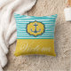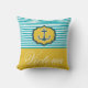 Nautical Aqua Blue Yellow Stripes Anker Custom Kussen