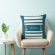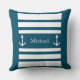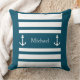 Nautical Blue and White Stripes Anchor Name Sierkussen. U kunt zich personaliseren door tekst (naam, familienaam, monogram..) te schrijven.