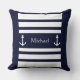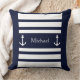 Nautical Blue and White Stripes Anchor Name Sierkussen. U kunt zich personaliseren door tekst (naam, familienaam, monogram..) te schrijven.