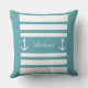 Nautical Blue and White Stripes Anchor Name Sierkussen. U kunt zich personaliseren door tekst (naam, familienaam, monogram..) te schrijven.