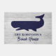 Nautical Blue White Family Name Rustic Whale Doormat. Pas dit New England nautical strand house-themed doormat aan met je familienaam en locatie. De set is voorzien van een populair, gevlekt, met witte spoeling verweerd hout met een walvis. Aangepaste bestellingen beschikbaar op truullc@gmail.com