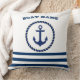 Nautical Boat Name,Anchor Navy Blue Striped Kussen
