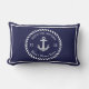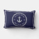 Nautische Bootnaam Anker Touw Marine Blauw en Wit Welkom Aan boord Outdoor Lumbar Kussen