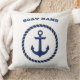 Nautical Boat Name,Rope,Anchor Navy Blue Striped Kussen