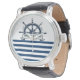 Nautical Boat Wheel, Navy Blue White Stripes Horloge
