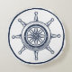 Nautical Coastal Blue Beach House Boat Ship Wheel Rond Kussen