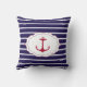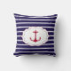 Nautical Dark Blue White Stripes Red Anchor Kussen