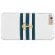 Nautical Gold Anchor Navy Blue Stripes iPhone 6 Plus hoesje.