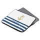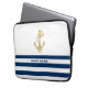Nautical, Gold Anchor Navy Blue White Stripes Laptop Sleeve