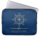 Nautical Gold Boat Wheel, Navy Blue Laptop Sleeve